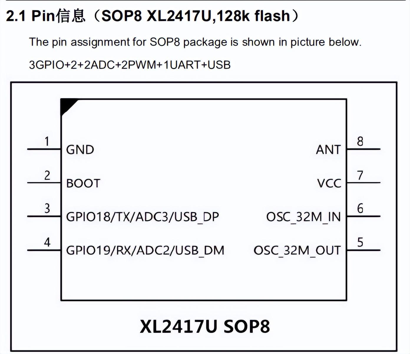 XL2417U一颗芯片就整合了主控MCU、2.4G射频、USB接口三大核心功能。传统方案可能需要多颗芯片才能实现,而XL2417U单个芯片即可搞定,采用SOP8封装,批量价不到一块,显著降低了BOM成本和PCB面积。XL2417U可应用于HID设备,智能家居和消费电子等领域。