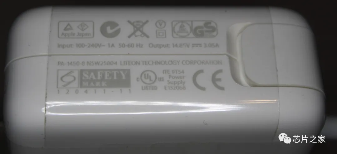 下图显示了充电器声称拥有的安全认证。同样,它看起来很真实,没有错别字或难看的字体。