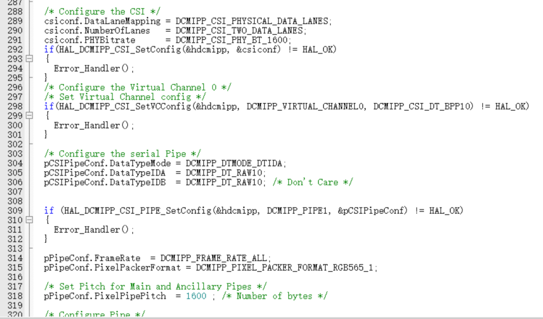 为了解决这个问题,只能从ST的官方库的例程找到CSI和DCMIPP配置。