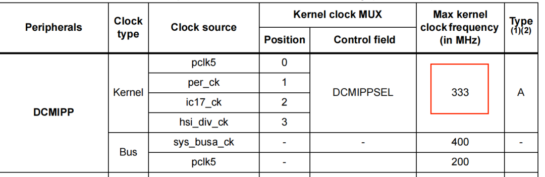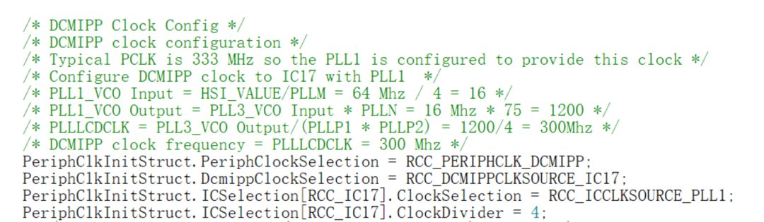 官方的例程中对DCMIPP的配置是将其配置为300MHZ,经典配置是333MHZ,这点和手册中描述的一致。