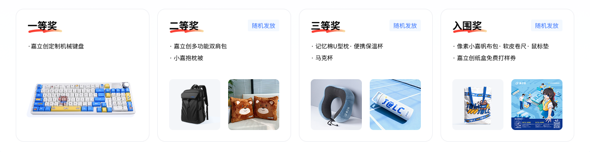 参与即有机会赢取嘉立创定制机械键盘、多功能双肩包、抱枕被、U型枕等超多实用壕礼!
