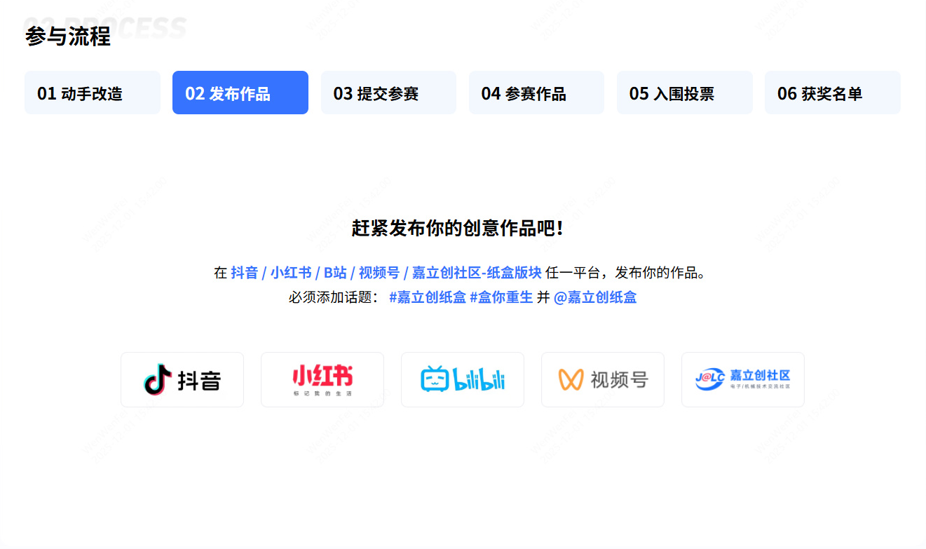 2、发布作品:在抖音/ 小红书 / B站 / 视频号 / 嘉立创社区-纸盒版块 任一平台,发布您的作品。