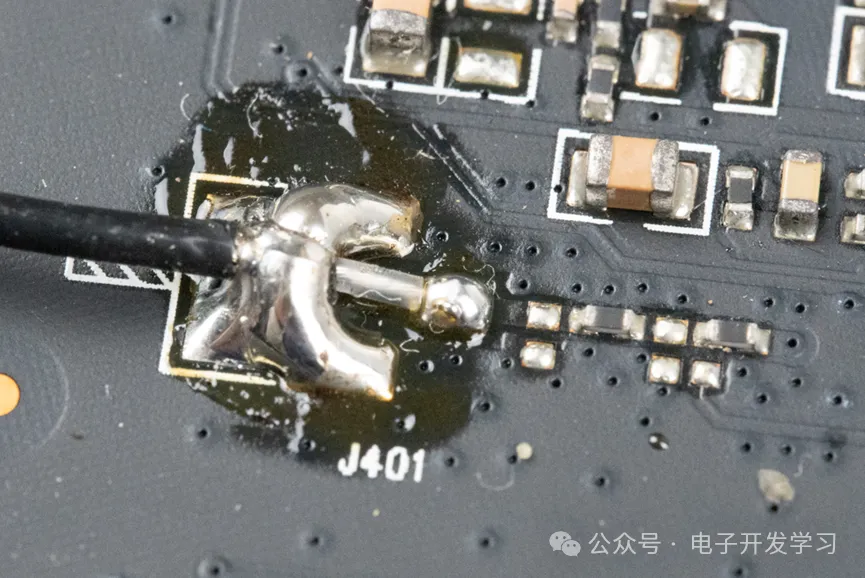 看起来天线是手工焊接,焊接完之后没有清理松香。