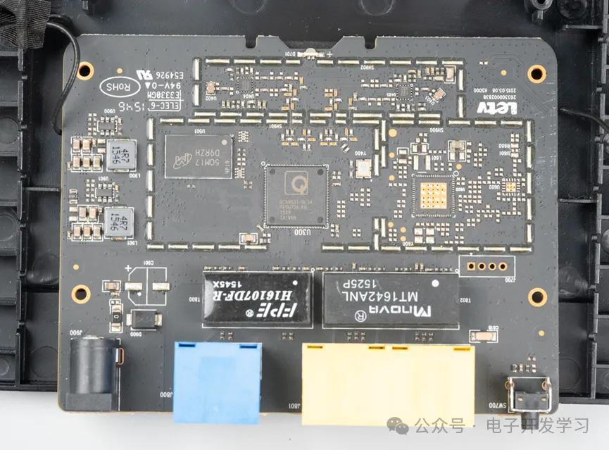 Wi-Fi SoC是来自高通的QCA9531,这是SoC支持2.4GHz频段的802.11n标准,采用2x2 MIMO架构,主频是650MHz。这是比较老的芯片方案了。