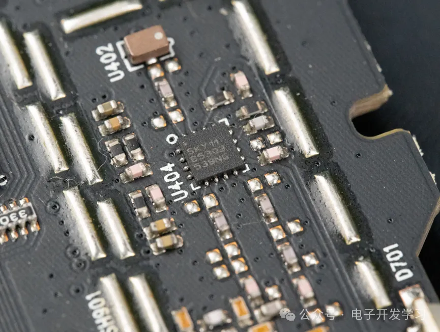 看起来板子正面的东西也很少。并且在关键电路外围都预留了屏蔽壳安装位。