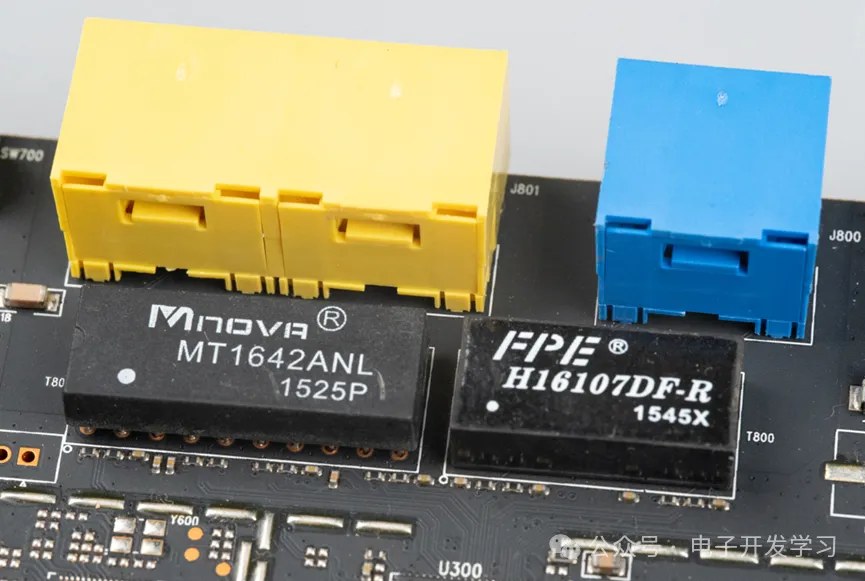 而以太网连接起应该是沾了液体形态的助焊剂之后,过波峰焊,然后并没有清洗助焊剂。