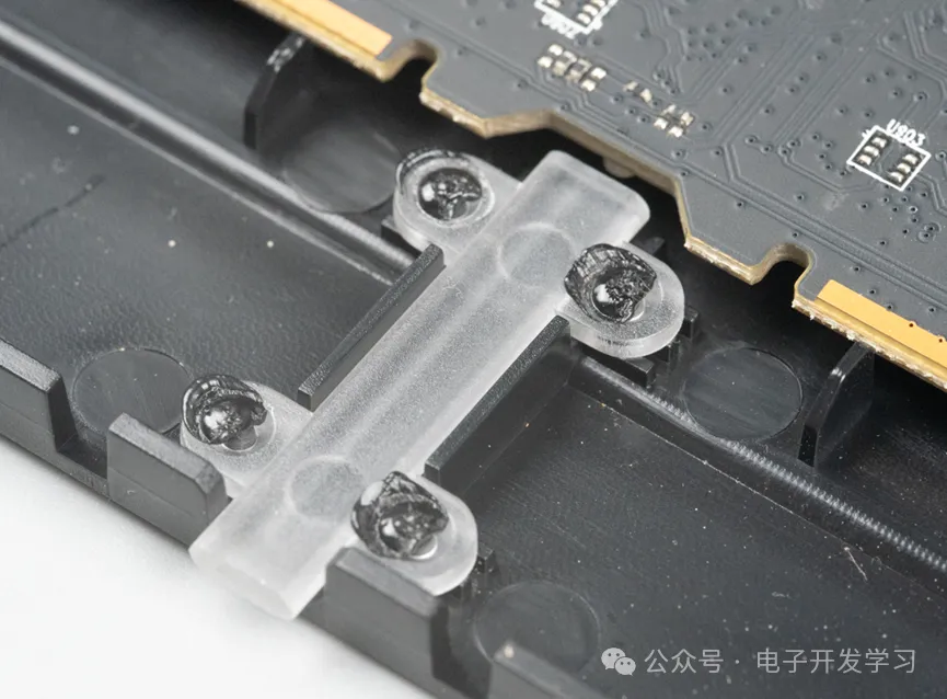 内衬壳体上有三个孔,孔和下面电路板上的芯片刚好正对。