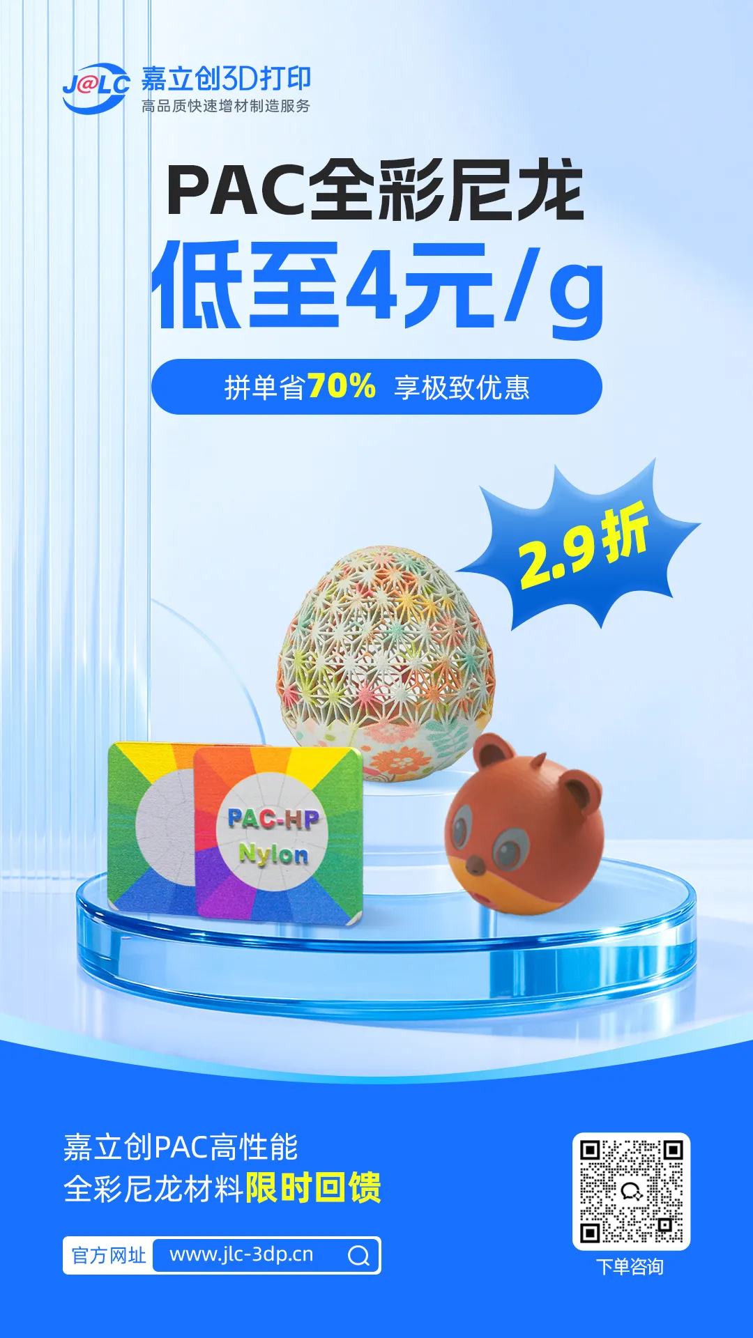 但因全彩尼龙打印【PAC】辅料需求、核心材料及配套器材均依赖进口,开机成本高昂,此前13.5元/g的定价(起步价100元)让不少朋友心动又犹豫。