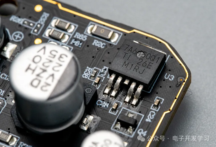 电源芯片采用了Ti的TPS7A6150QKVURQ1,这是一款车规级的具有 25μA 静态电流的LDO,最大输出电流300mA。这个LDO的封装形式为TO-252-4,这种封装形式大家可能更多见到的是DC-DC。