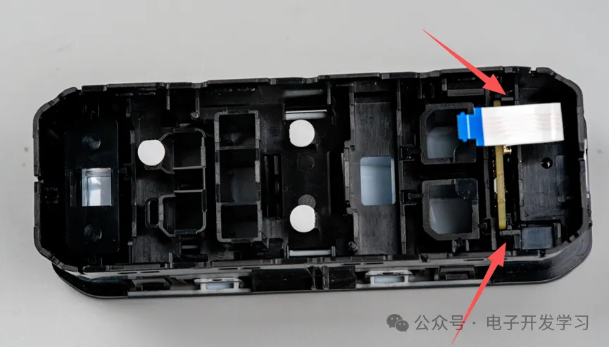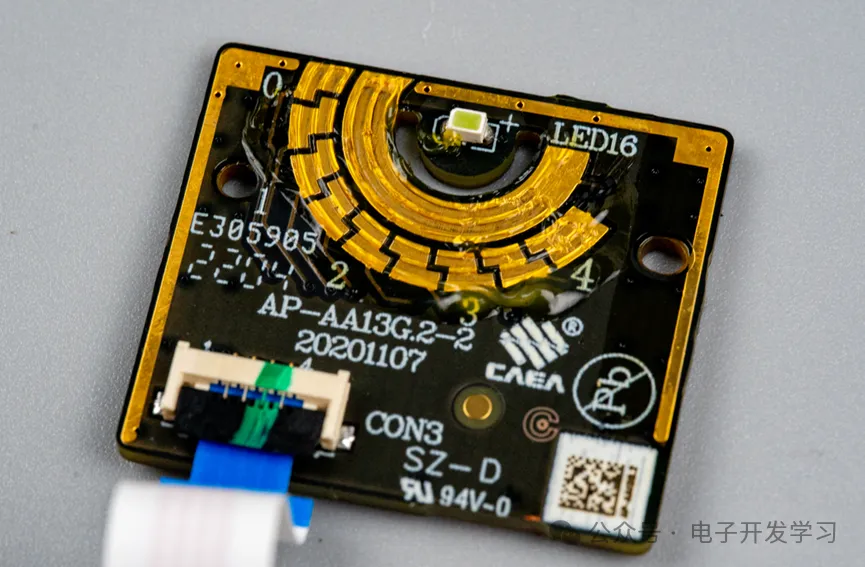 模组外壳立还有一个板子和刚才镶金边的板子通过一个FPC排线连接。
