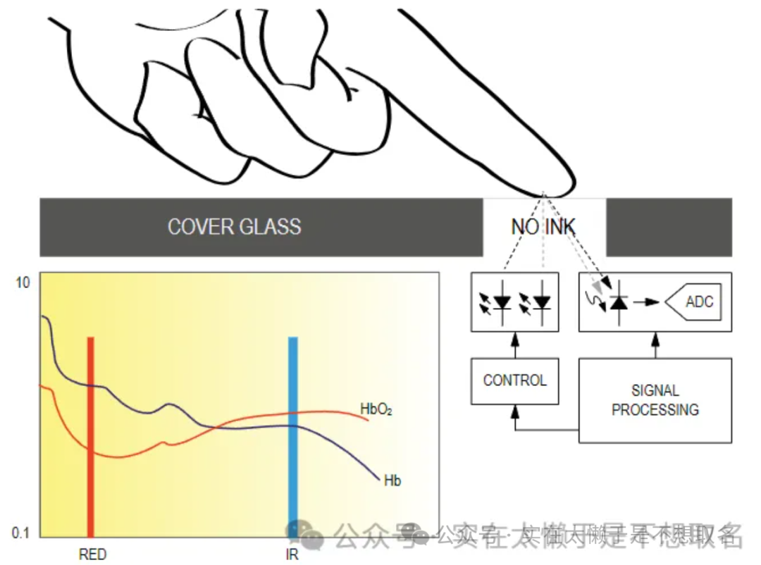 - 芯片内部的算法根据红光和红外光的强度比值,计算出血氧饱和度。