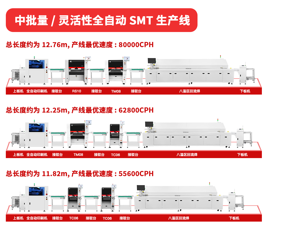 2、中批量/灵活性全自动SMT生产线
