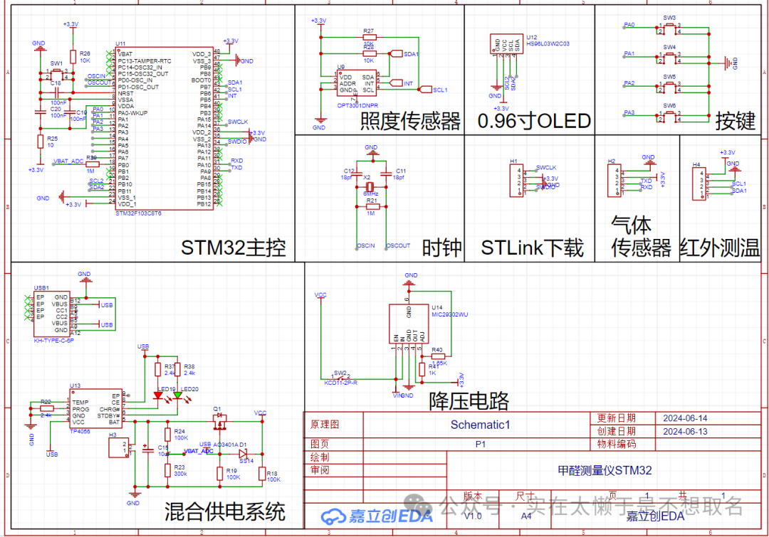 在前几期的项目中,我们成功地制作了一款基于STM32的光强测量仪。虽然在测试过程中遇到了一些小问题,但整体效果令人满意。正值端午假期,我发现家里刚刚装修半年,空气中依旧弥漫着一股甲醛的味道。这引发了我对家庭环境健康的关注。因此,我决定在之前项目的基础上,设计一款多功能的甲醛测量仪,并且集成光强测量仪和红外温度测量仪的功能。
