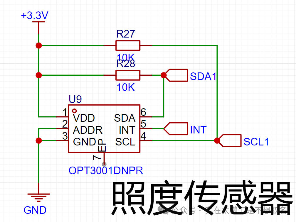 照度传感器呢还是采用之前的OPT3001,首先呢是因为这个有现成的方案和代码,其次是我觉得它的性能比BH1750要好,当然最最重要的是,我上次做完还剩下几片没有用完,省的买了。