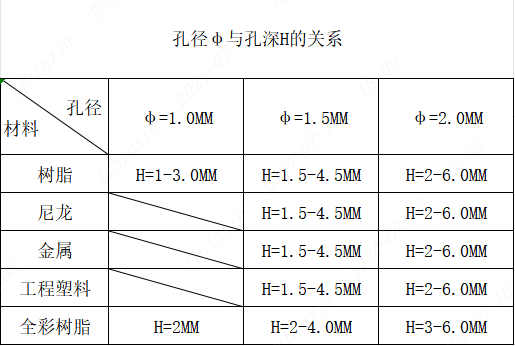 - 微孔/深孔设计需结合材料特性调整,可以参考以下表格标准: