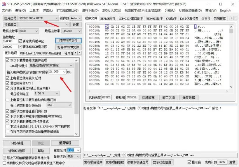 芯片型号(STC8G1K08A-8PIN)