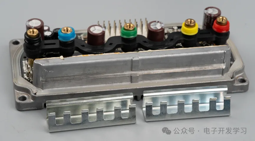 MOS也是通过这种卡簧卡在底壳上长出的散热块上的。