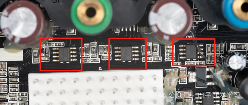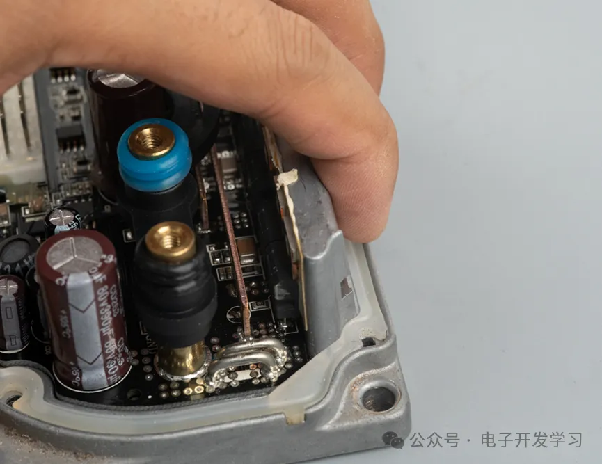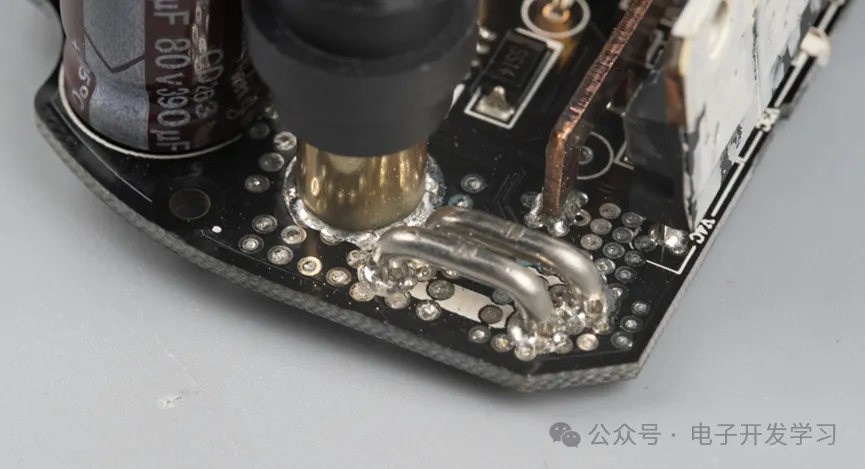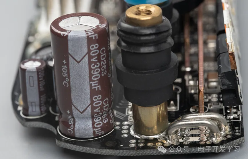 接线铜柱和旁边的电解电容,电解电容是80V390uF,板子上总共有4颗这样的电容。