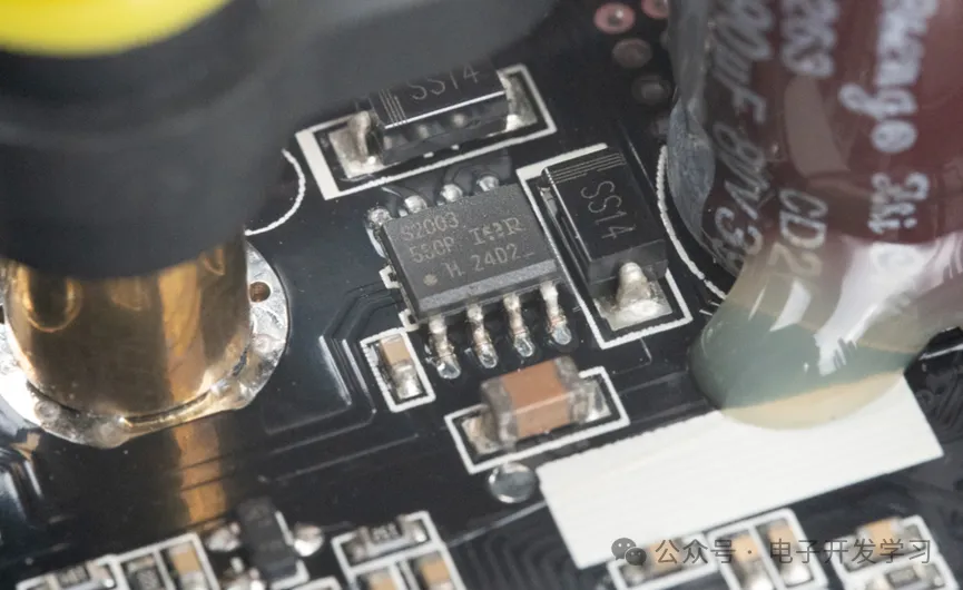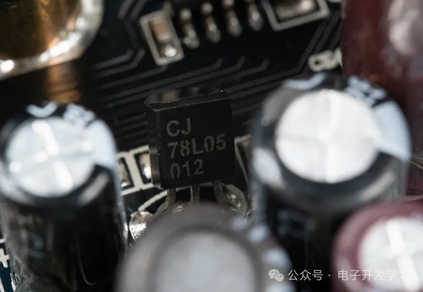 在一堆电容里还藏了一个CJ78L05,来自江苏长电的5V LDO。U1302把电源输入降压到12V给栅极驱动器供电,这个CJ78L05的作用就是把12V降压到5V。