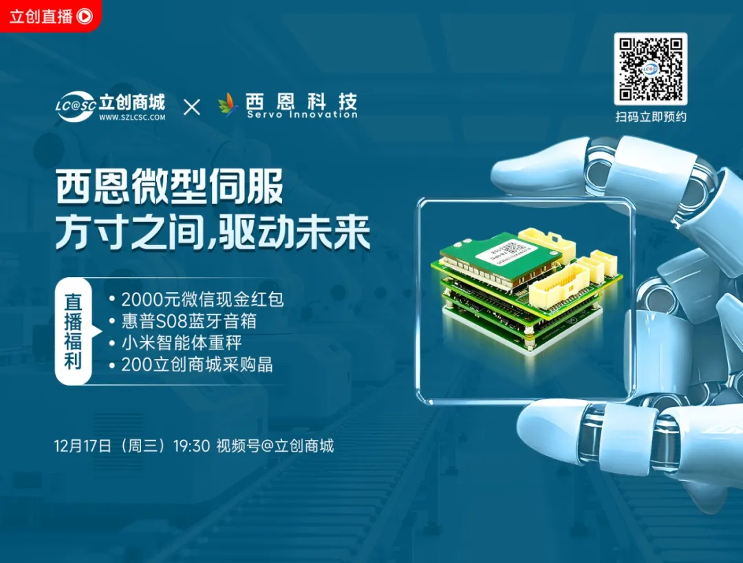 想解决伺服驱动器的EMI干扰、寻找人形机器人/航天装备/水下潜航器等高端场景急需的高可靠驱控方案?12月17日,西恩科技携“全国产化自研产品”做客立创商城直播间,全是工程师刚需干货!