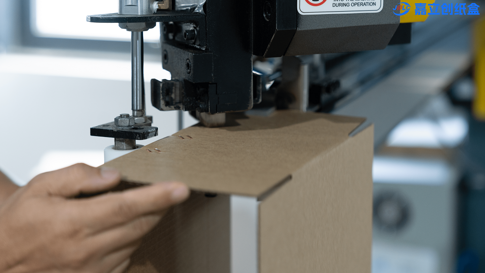 打钉:“打钉”是指使用自动纸箱成型机或手动钉锤等工具将钉子固定在纸箱上的行为,用于加强纸箱的结构稳定性和抗压能力。