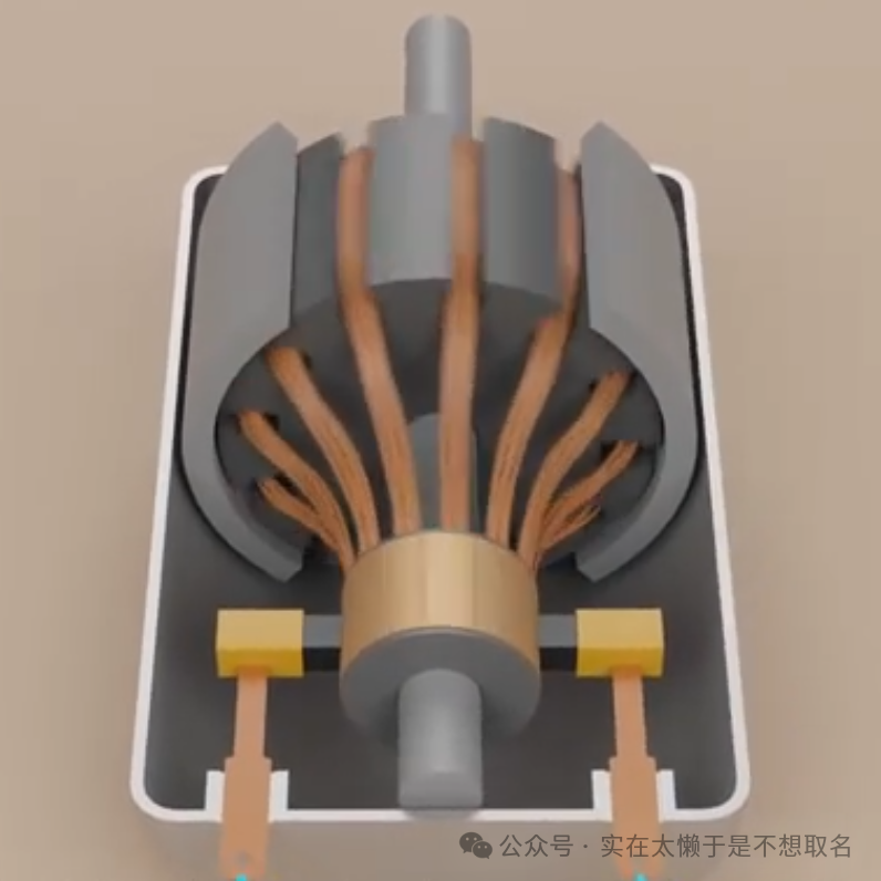 常见的直流电机由内部的转子和定子组成,通电线圈产生磁场利用磁场间的相互作用力转子转动。因此根据安培力公式,F = BIL。