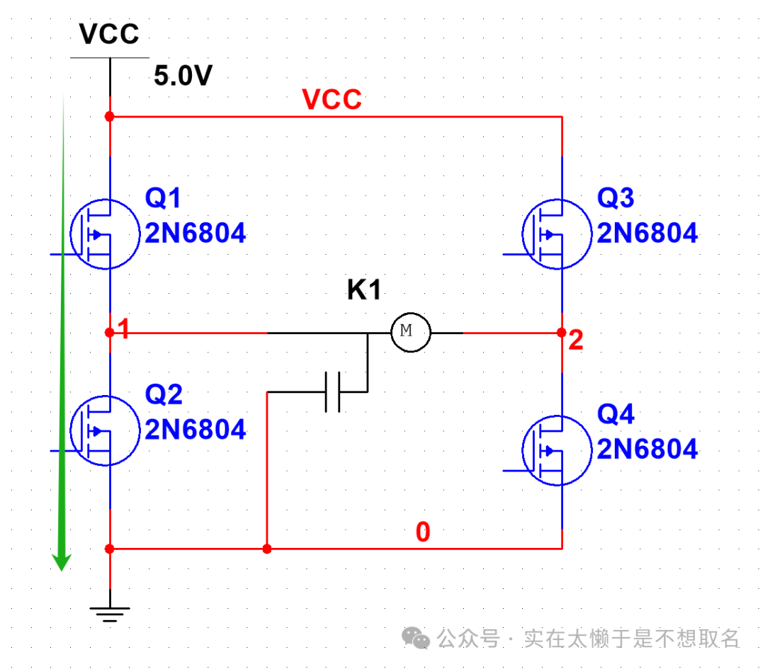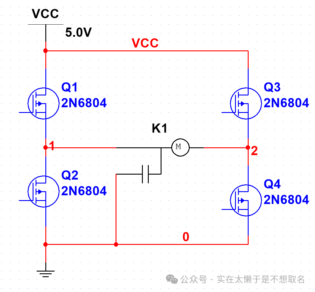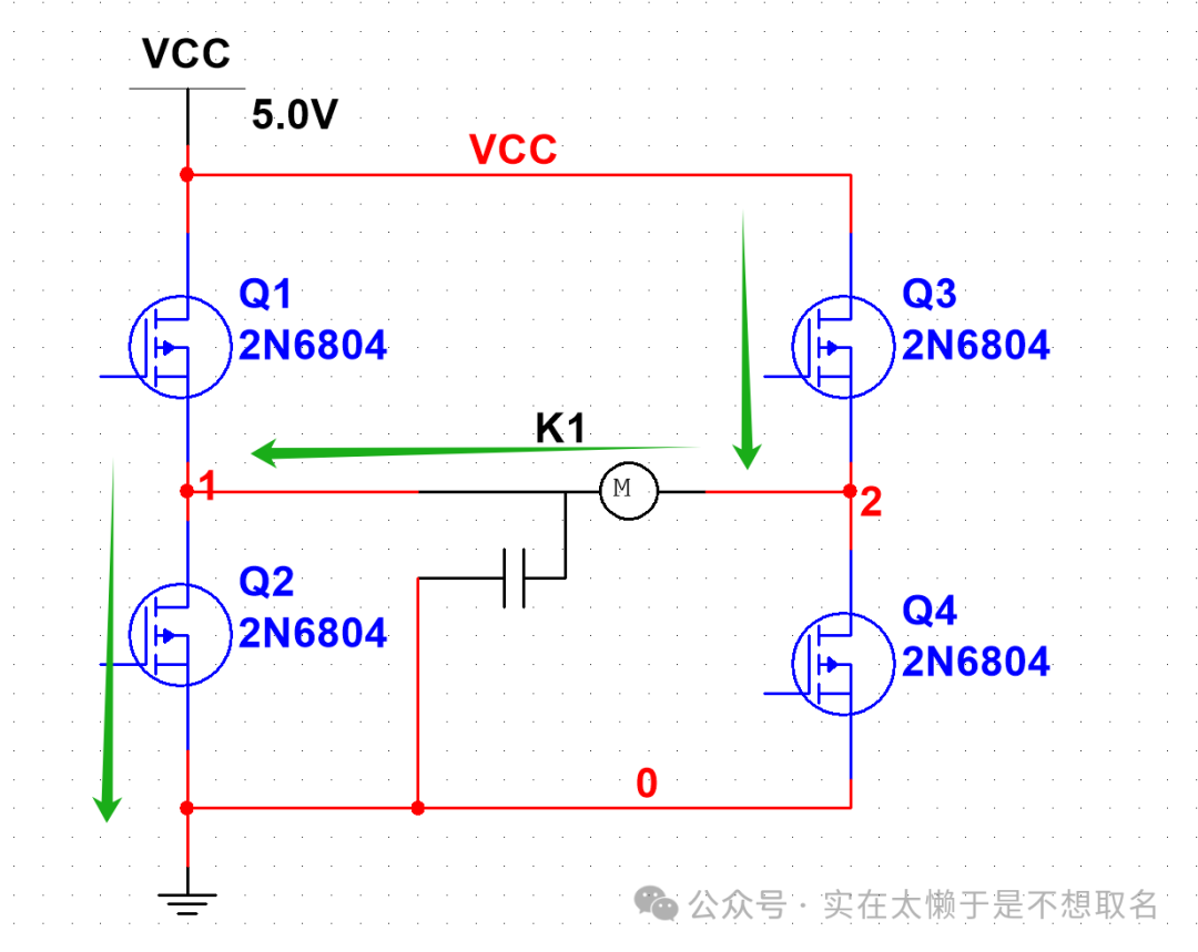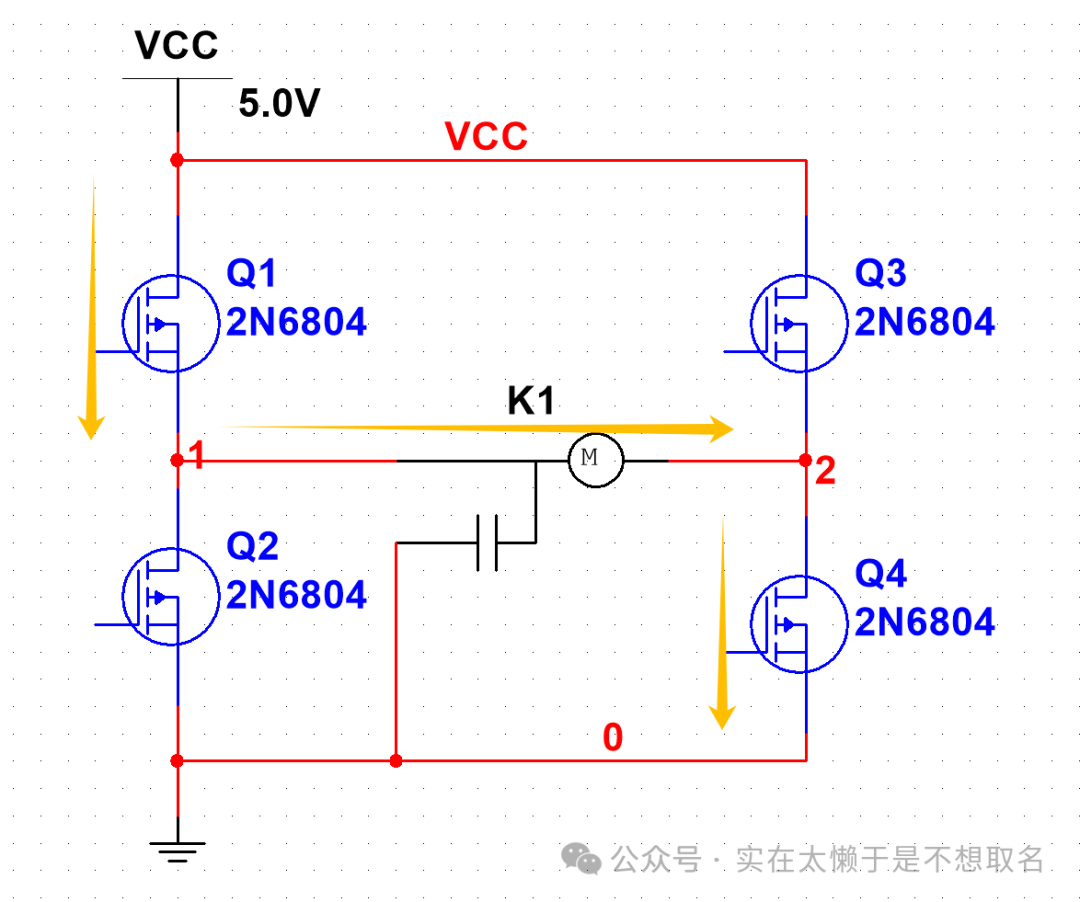通过操控四个MOS管的打开顺序,我们可以使得有足够大小的电流通过电机。