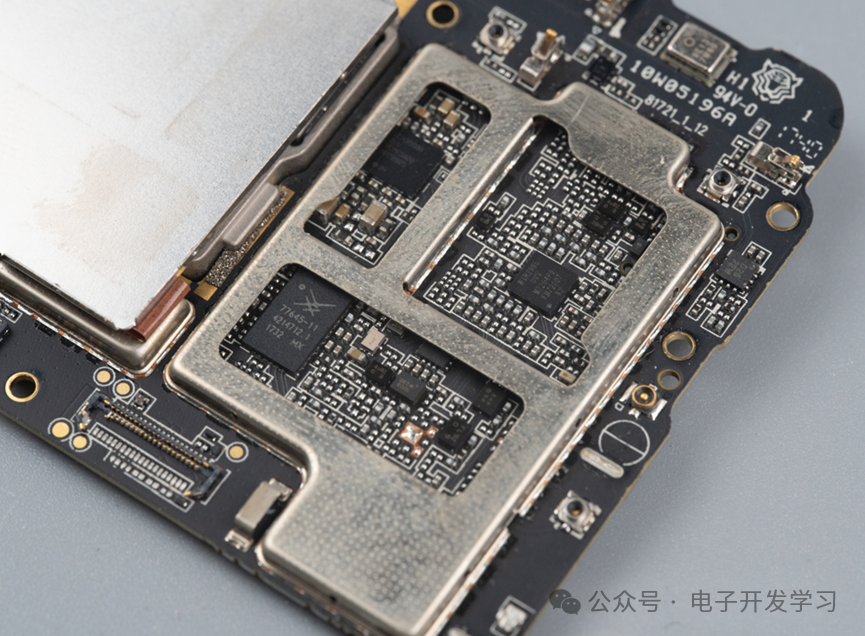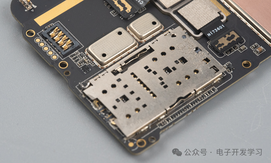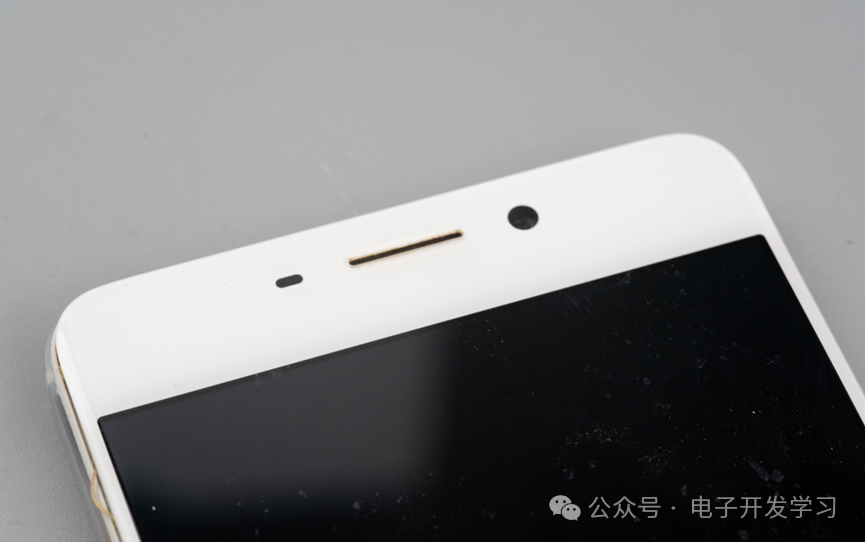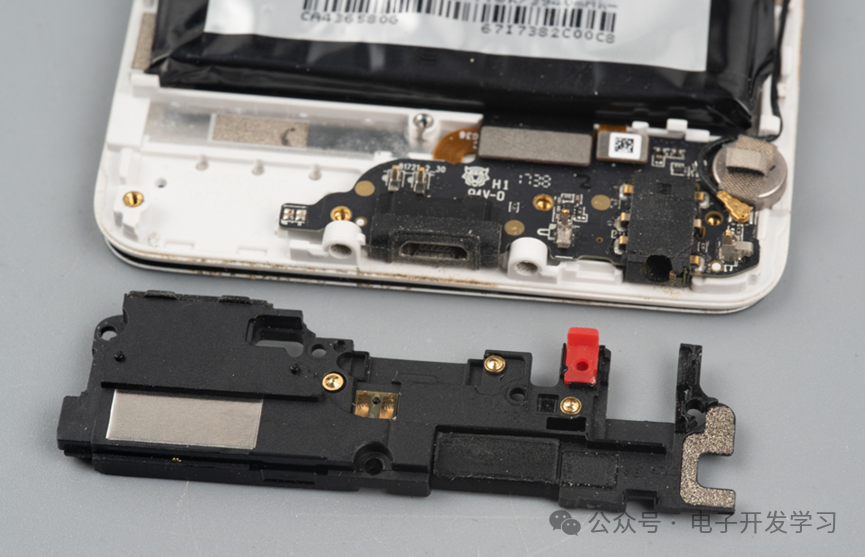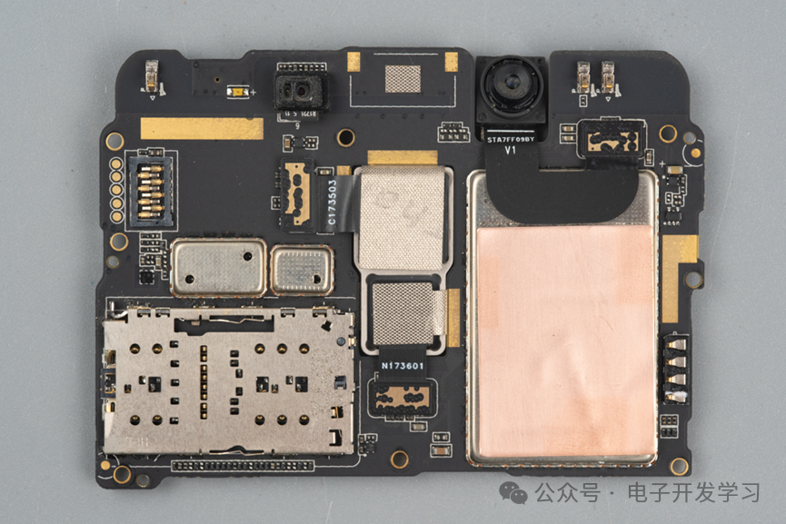 手机主板,看着挺简洁。右上角是前置摄像头。