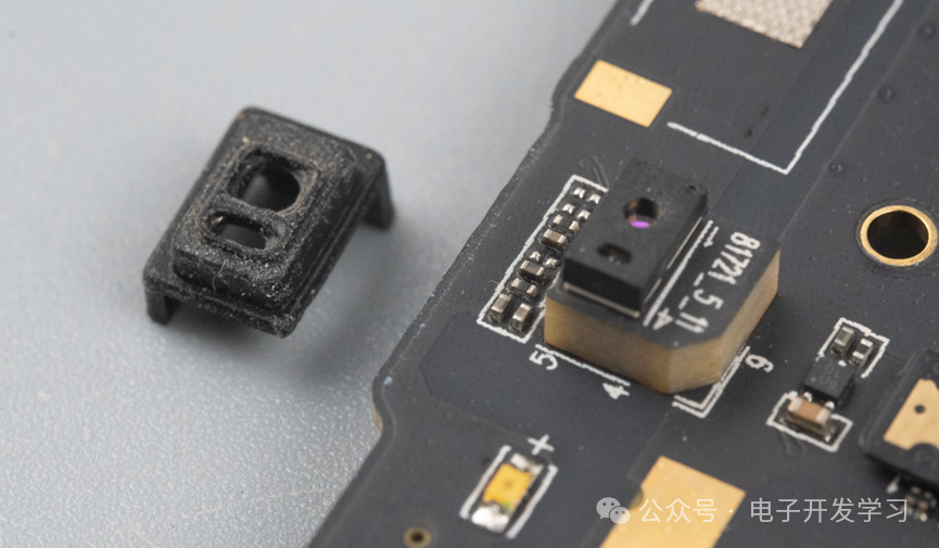 这个传感器有一个很厚的一个PCB基板,传感器上面套了个黑色橡胶外套。虽说它穿了鞋子和马甲,但是我一眼就认出了这应该是TOF传感器,用来记录景深。