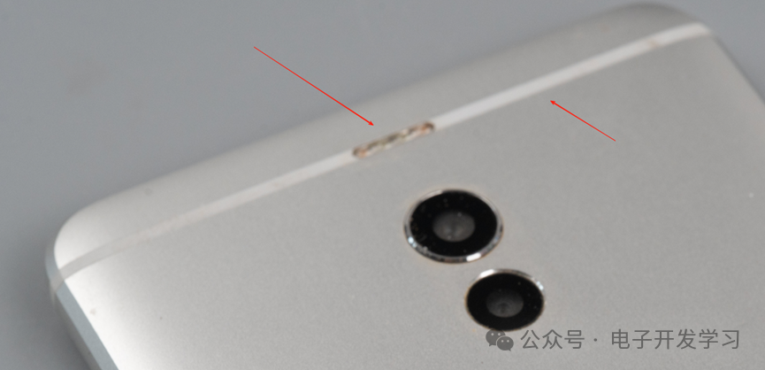 这个手机后面摄像头上方有一排手电筒,对,不是一颗灯,而是一排。拆看看是四个灯珠,两种。LED横流驱动芯片也有两个。
