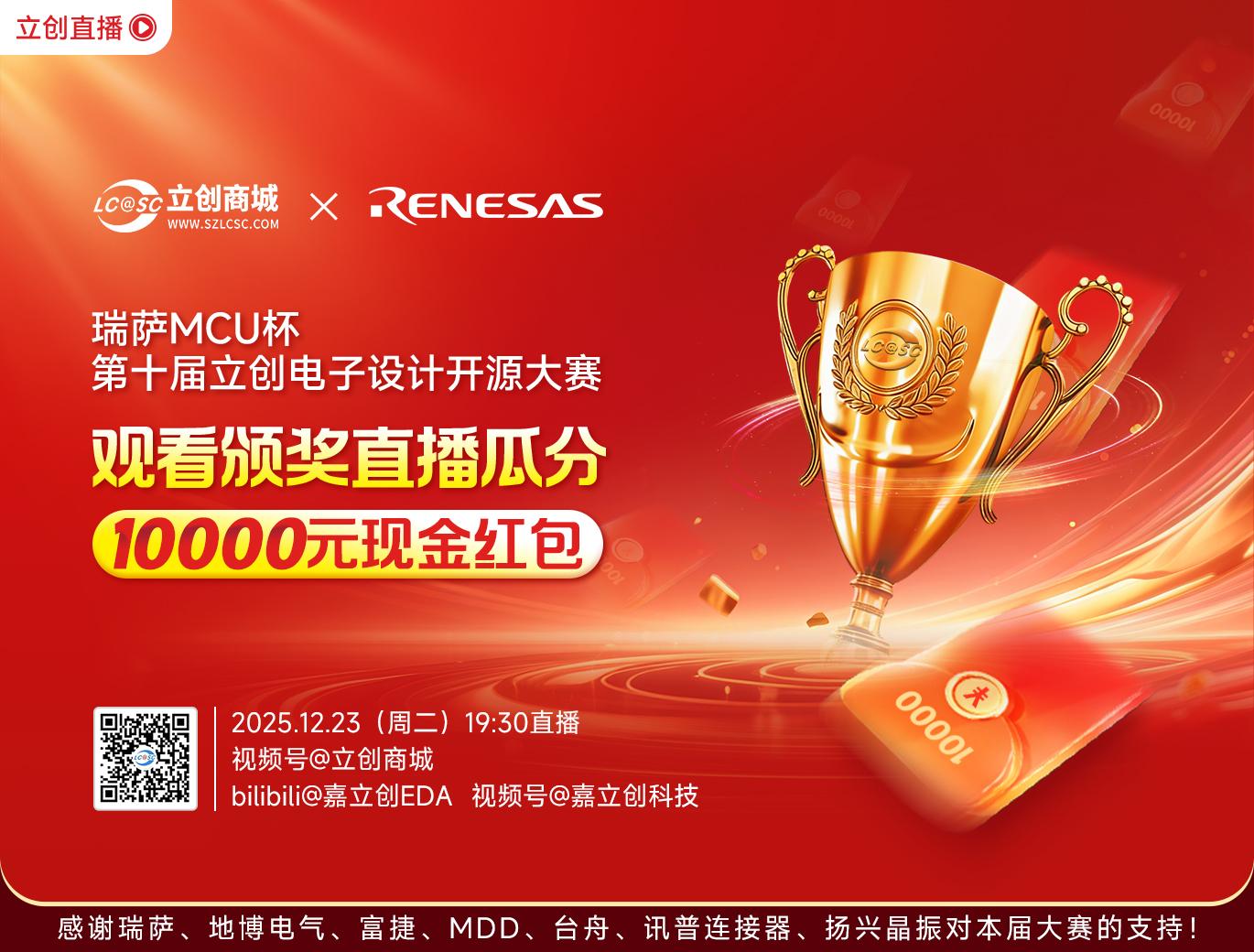 或许你已经知道,历经数月的创意角逐与严苛评审,“瑞萨 MCU 杯” 第十届立创电子设计开源大赛即将迎来最终的决战舞台。
