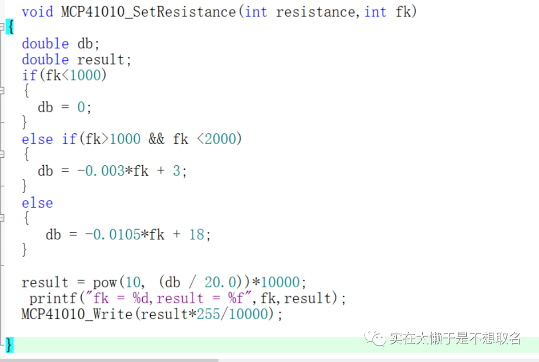 更具要求,我们需要在2KHZ时衰减-3DB,4KHZ时衰减-24DB,8KHZ时衰减-48DB,因此我们更具衰减要求,在数字电位器部分代码进行分段。