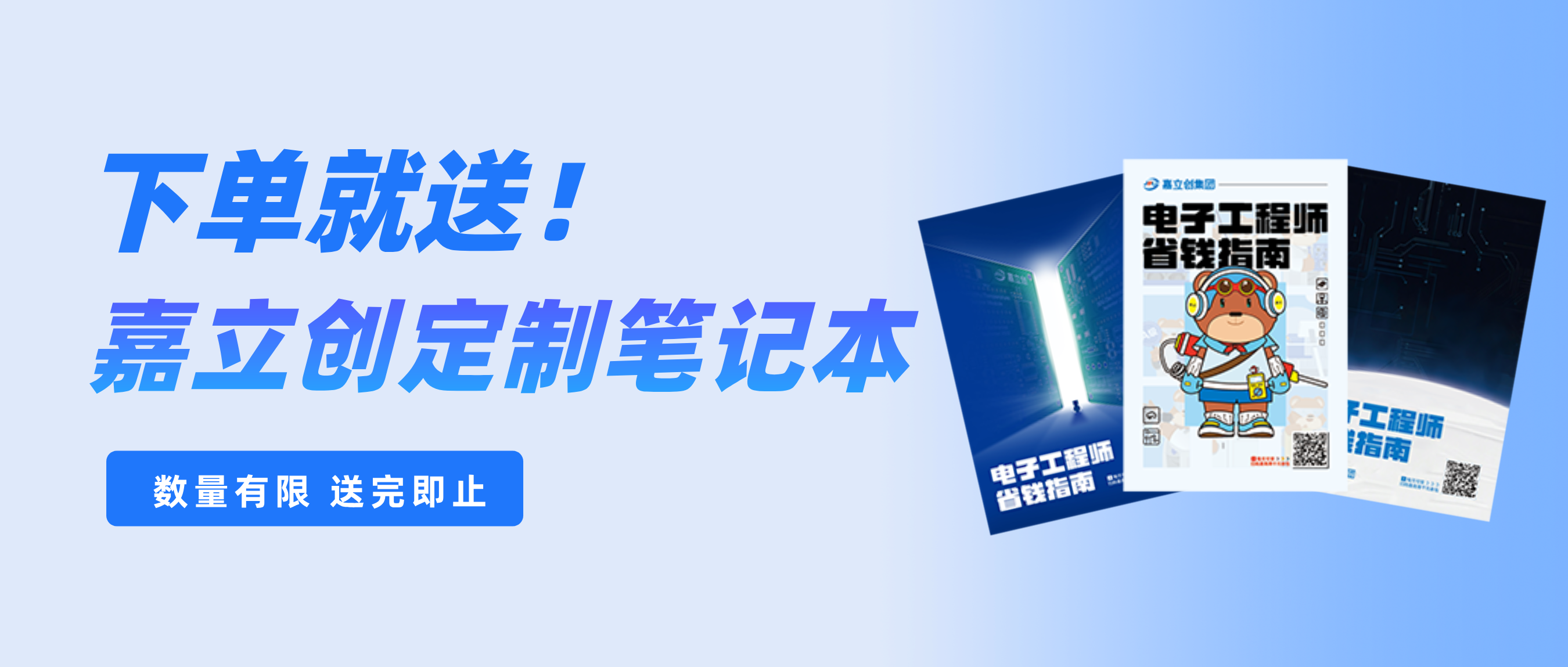 即日起,在嘉立创集团旗下任一业务线下单,就送嘉立创定制笔记本!(数量有限,送完即止)