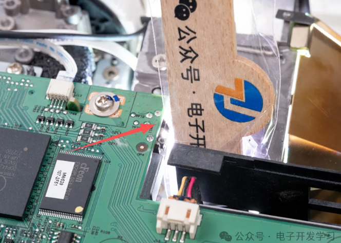 上电测试没反应,观察了一下这里有一个微动开关,当盖子盖上之后,这个开关会被结构上的一个楔形结构触发导通。我用一个牌牌给卡在这个位置,果然顺利上电。