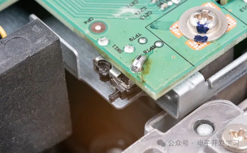 换个微动开关太麻烦,那就直接把这个微动开关的输出和接地引脚之间加一坨锡,这样相当于微动开关始终处于闭合。如果是给别人修理产品,这样是不可取的,破坏了产品原有的防触电安全机制。但是自己修自己的东西,就无所谓了,我知道开盖上电是有触电风险的。