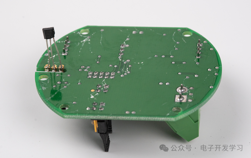 果然我猜的没错,这个电路板的背面有一个霍尔传感器,当电路板安装上去之后,这个霍尔传感器刚好插入前面说的那个磁铁的位置,能用来检测磁铁位置。