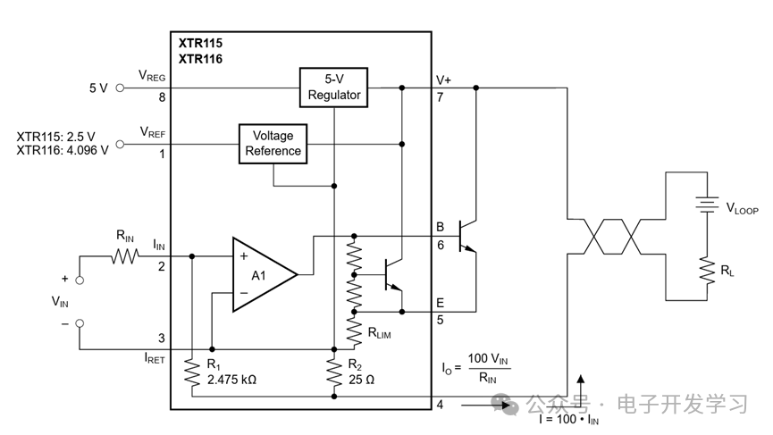 XTR115的典型电路图。