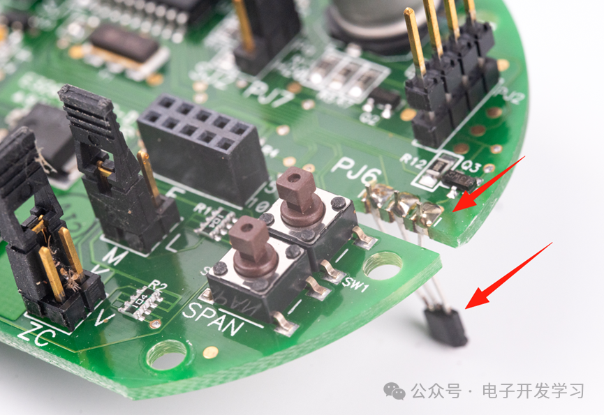 可以看到线性霍尔器件的安装方式:PCB边缘开槽,然后槽边放置通孔焊盘,把霍尔传感器焊接在上面。