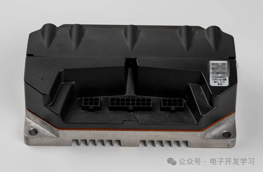 前几天收到了这个电瓶车控制器,今天我们来盘一下。第一眼看着这个铝合金底壳就非常结实,顶壳是黑色ABS材质,电池母线和电机相线的接线端子处有保护盖。铝合金底壳和ABS顶壳之间有一个棕红色的防水圈。