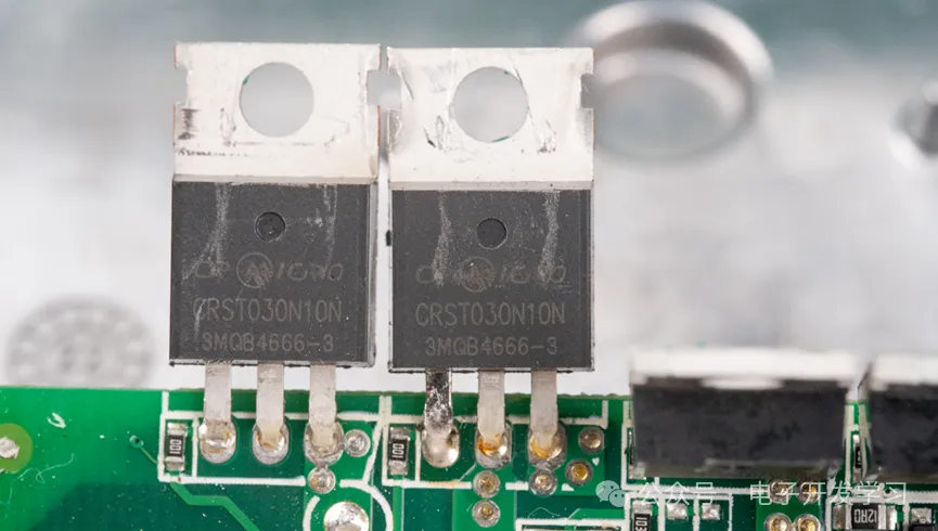 耐压100V,导通阻抗2.5毫欧,持续电流180A@25℃,相比其他一些控制器用85V 4~5毫欧的MOS来说,这个MOS从参数上已经好太多了。