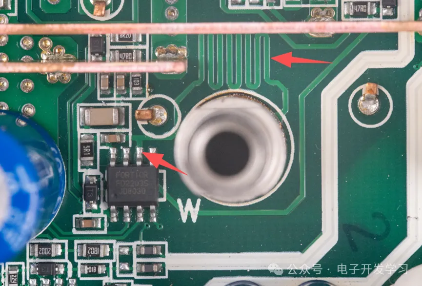 从相线输出到FD2203S的VS引脚的走线有一段蛇形线。这个蛇形走线到低是为啥呢?