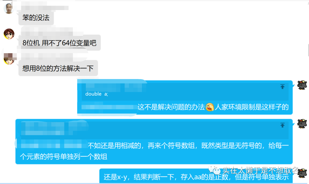 今日在某一技术群里水群的时候,看到群友问了一个很有意思的问题如下所示:如果xx和yy是48位变量,将xx和yy分别用XX[]和YY[]来将这些数据分为六段进行保存我们该如何运算其差值。