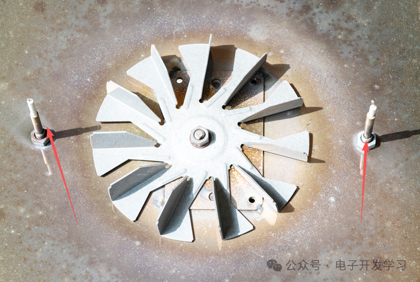 前面说到顶部装了一个风扇,这就是那个风扇,重点是风扇旁边有两个热电偶,这才是这个炉子最关键的地方。