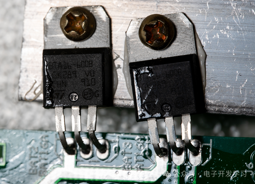 这两个开关管的型号是ST的BTA16-600BRG,16A的晶闸管。