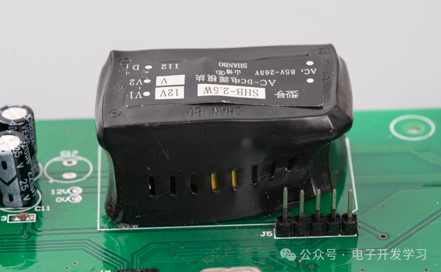 另一面是加热控制电路。板子上的电源模块很显然变形了。