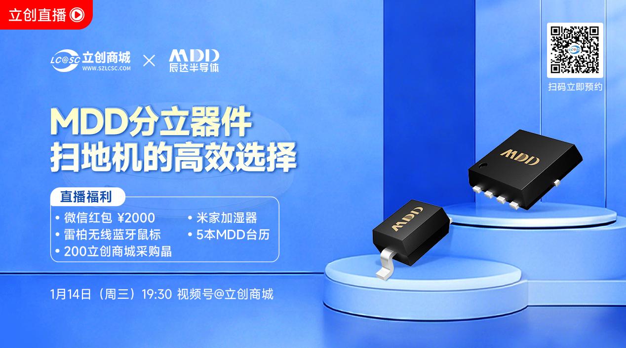 如果你也想了解扫地机器人和BMS 电池管理系统的前沿技术,那这场由立创商城联合MDD辰达半导体带来的专业直播,就将带你直击行业痛点,解锁实战干货!