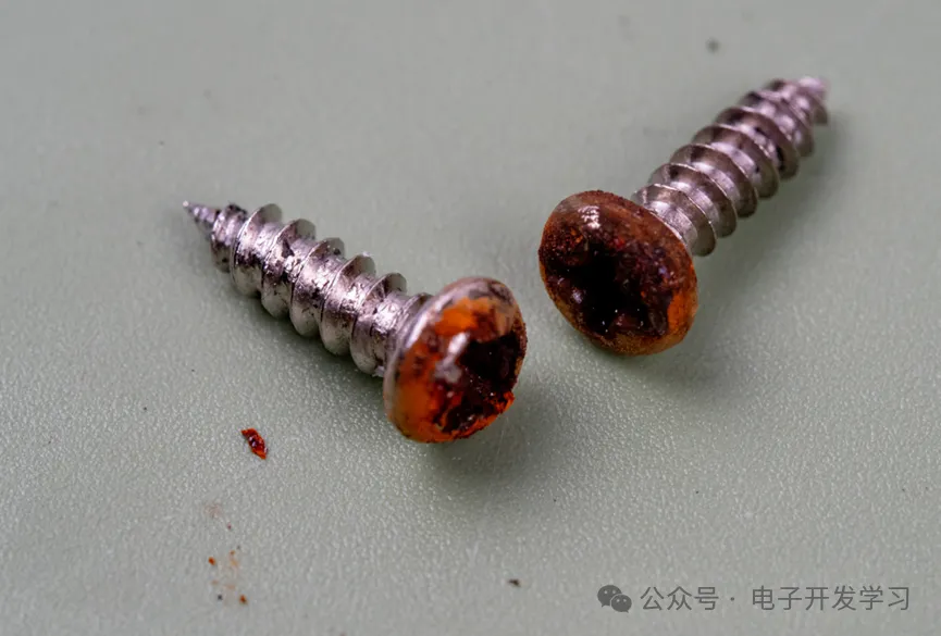 果不其然拆下来的螺丝头部锈蚀有点严重了,这已经影响到饮水安全了。