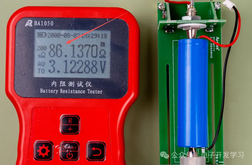 使用四线内阻测试仪测了一下这个电池,内阻已经达到了86毫欧,这已经没有利用的价值了,好的电池内阻应该在30毫欧以下。