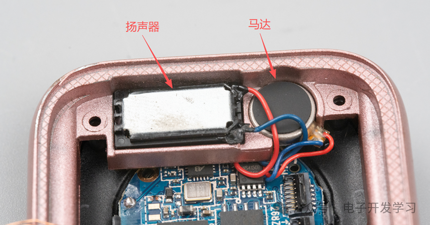壳体内一侧是扬声器和马达。