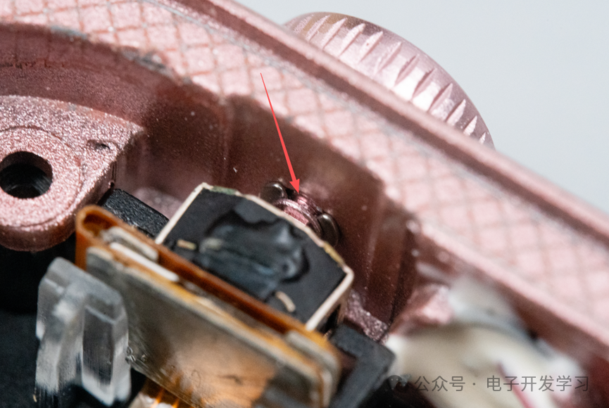 我一开始很好奇,这种旋钮是怎么安装进去不掉出来呢,仔细一看原来是有一个非常小的卡簧。